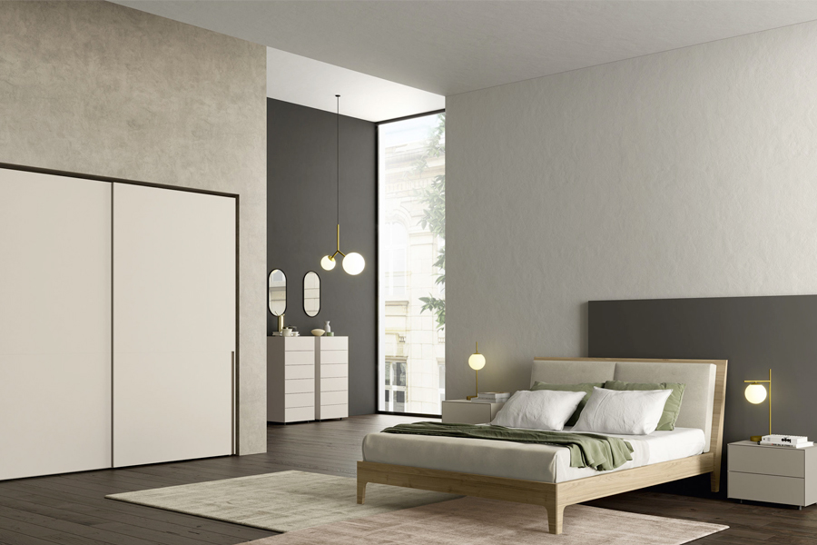Le forme contenute ma avvolgenti della testiera, sono rese ancora più confortevoli dal guscio interno con una sottile e morbida imbottitura, rivestita in pelle o ecopelle. Il retro della testiera è invece laccato opaco, in tinta o in contrasto. Le fasce perimetrali del giroletto sono imbottite e rivestite singolarmente. I piedi in metallo hanno una sagoma di ispirazione vintage e possono essere in finitura Brown, Piombo oppure Bronzo, Ottone e Rame per abbinamenti in stile luxury.