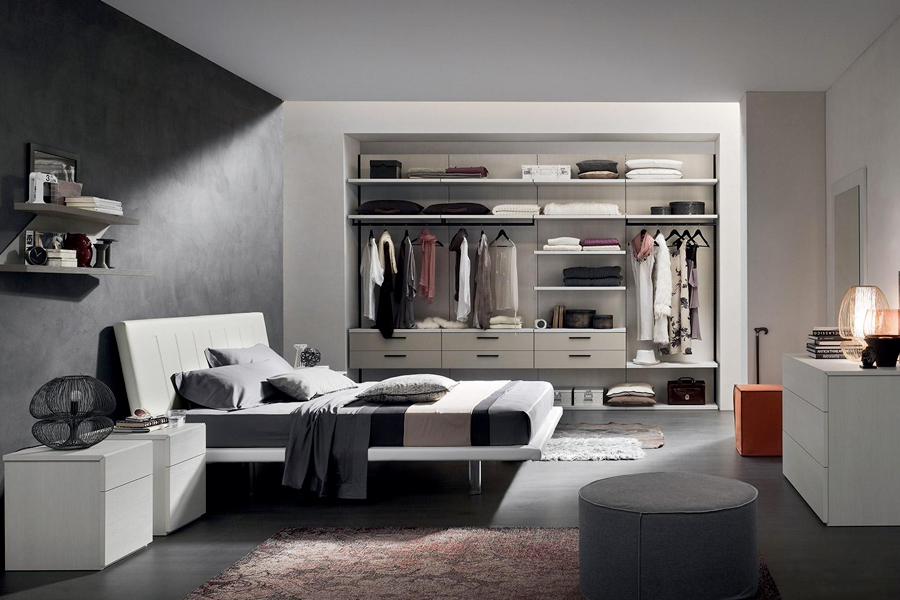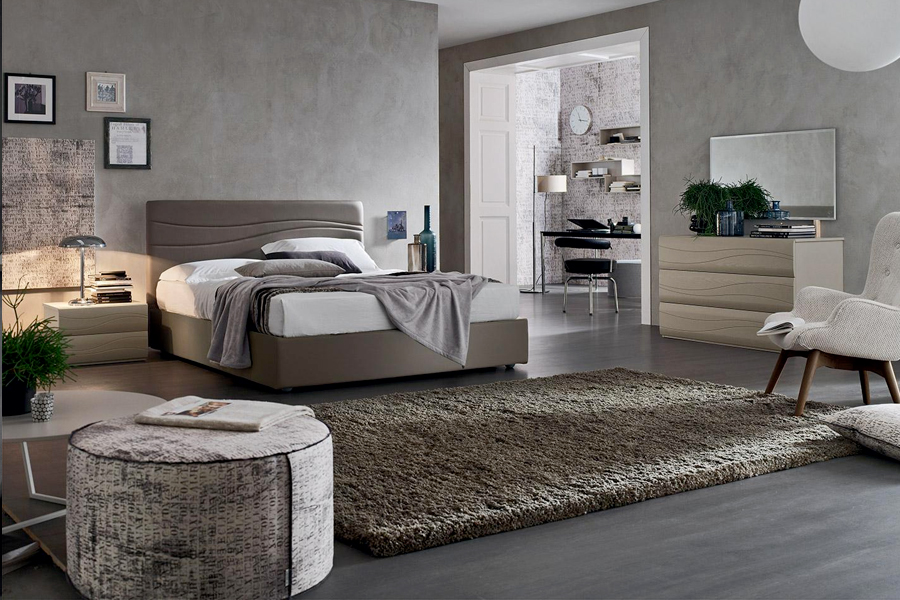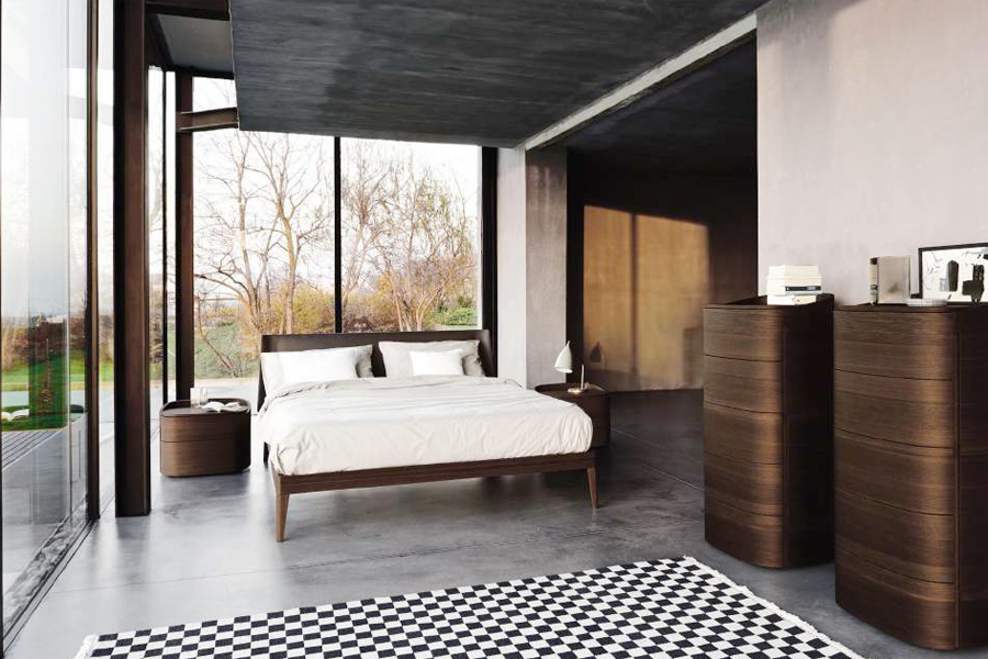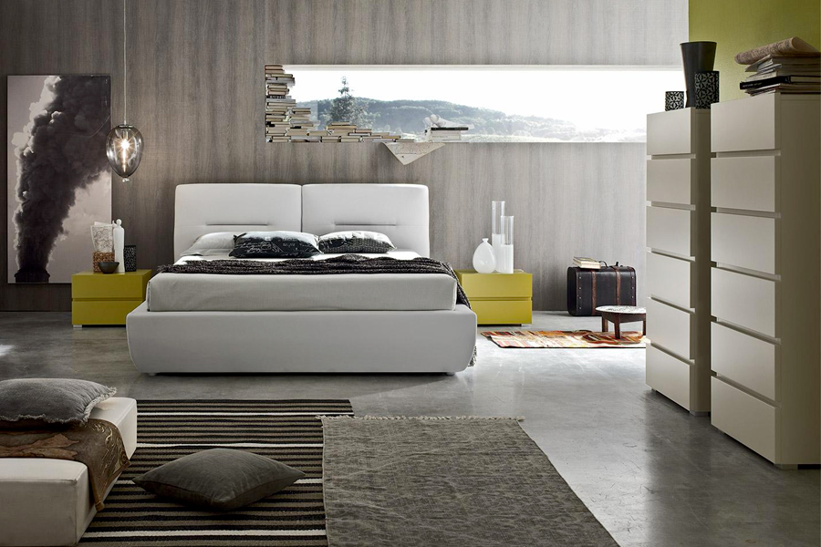 cod. brio brio Particolari tagli diagonali danno dinamismo alla camera da letto: la lavorazione del top e del primo cassetto e il design delle mensole...