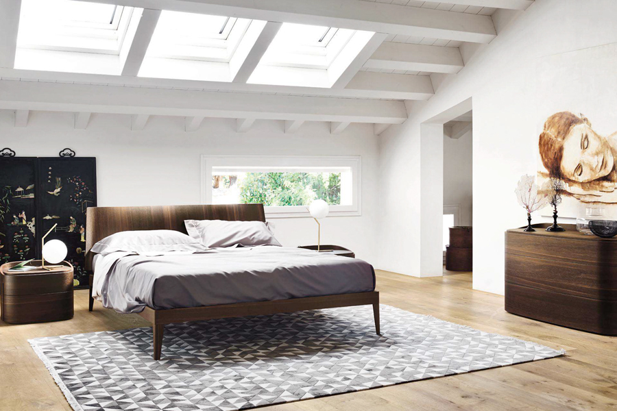 cod. aliante 2.0 aliante 2.0 Aliante 2.0 impiallacciato in Rovere termotrattato con piedi in legno nella stessa finitura e testiera imbottita con rivestimento in pe...